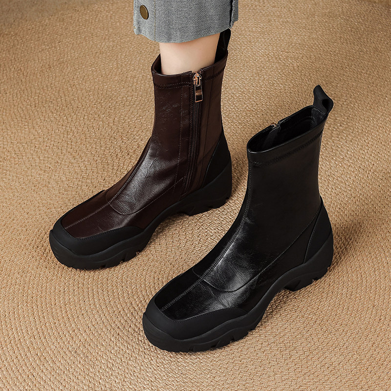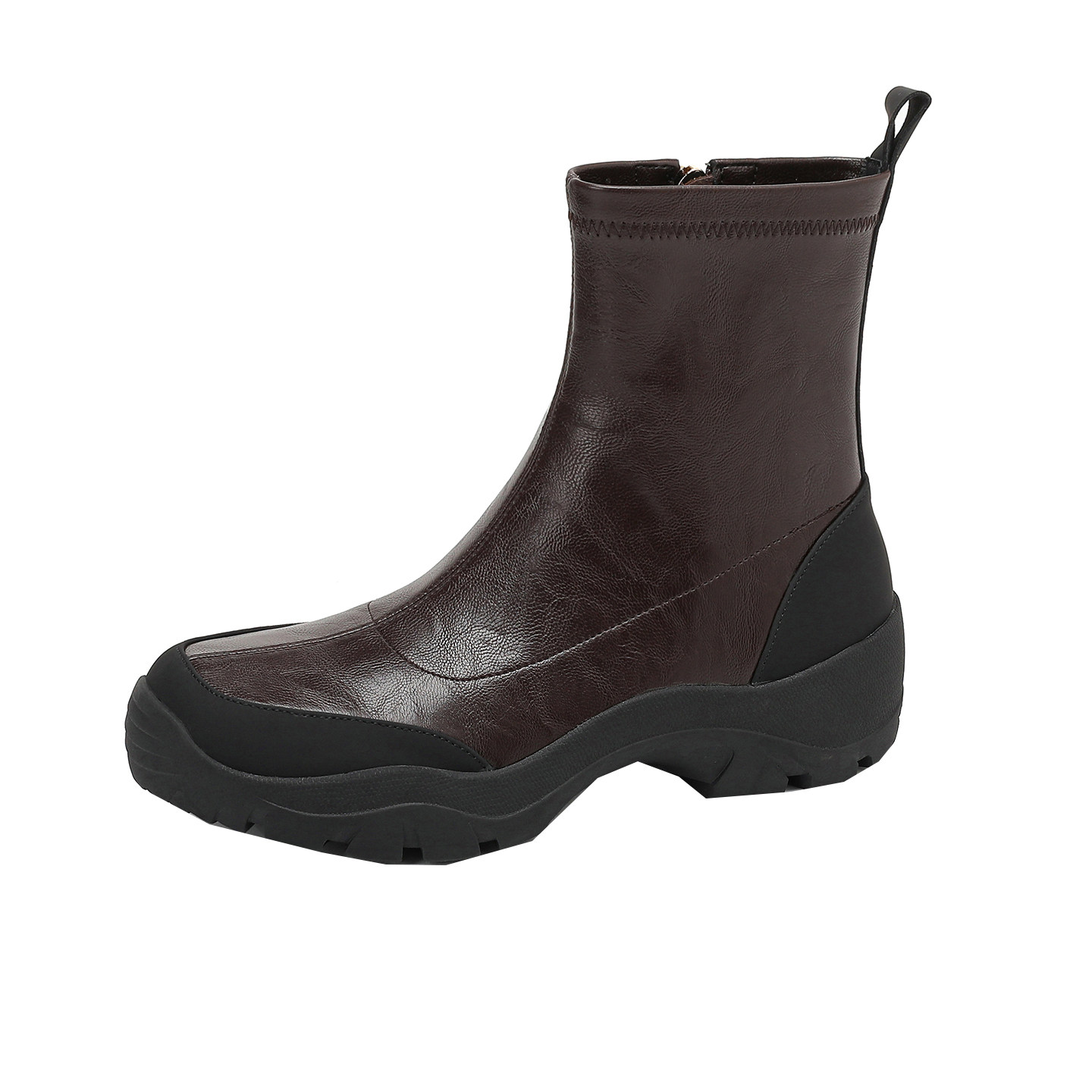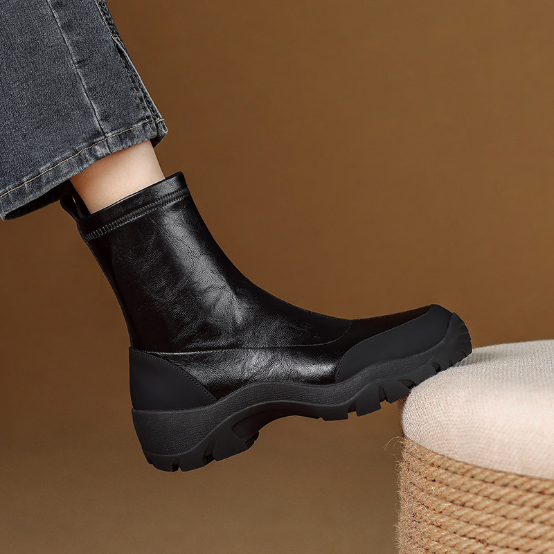 5cm秋冬加绒弹力瘦瘦靴女2025新款厚底增高运动底马丁靴高跟短靴