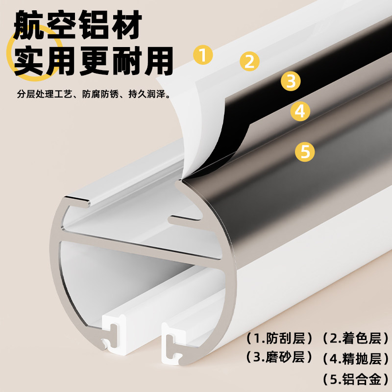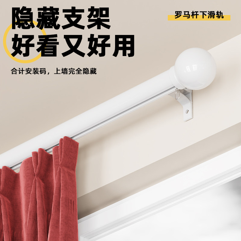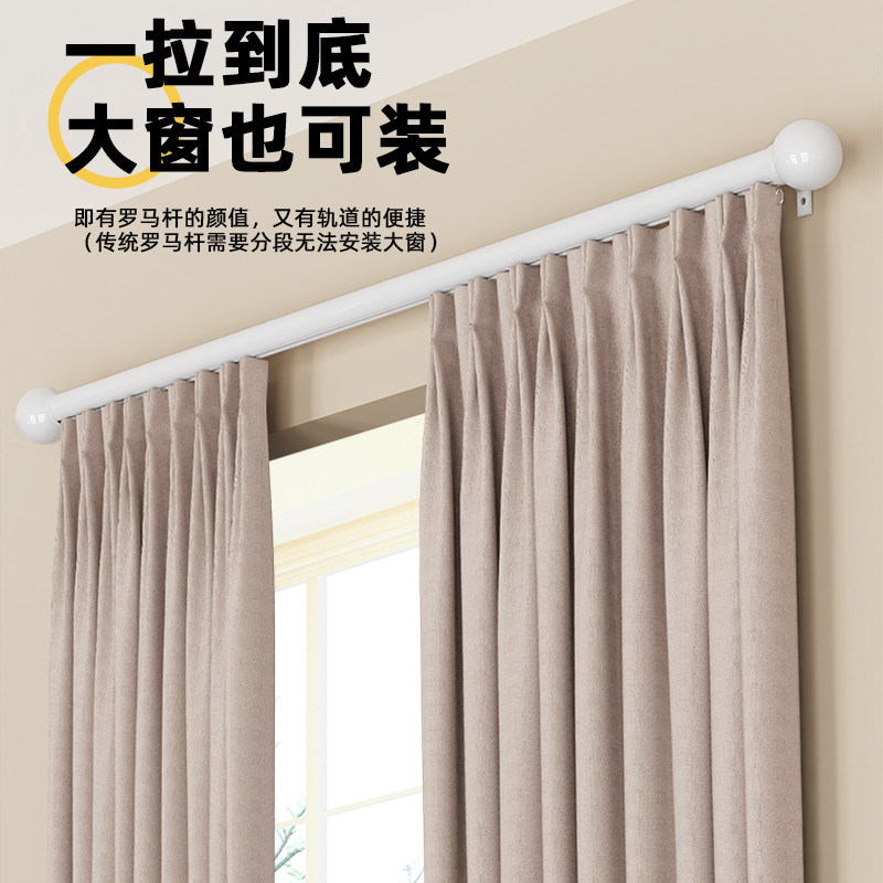 窗帘轨道罗马杆简约加粗铝合金静音侧装顺滑滑道单双窗帘杆下滑轨