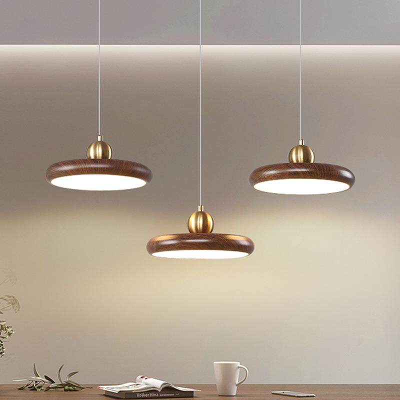新中式餐厅吊灯全光谱护眼简约三头吧台灯轻奢飞碟卧室床头小吊灯