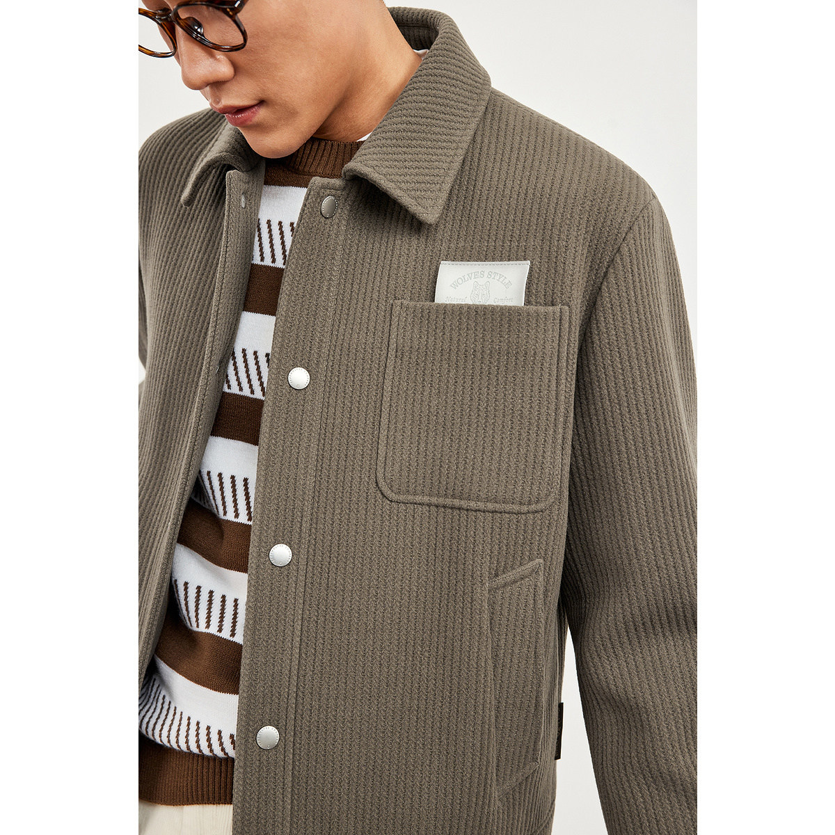七匹狼官方正品翻领夹克高档男装秋冬休闲保暖品质干部羊毛呢外套