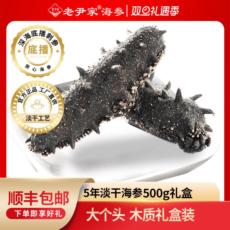 老尹家5年淡干海参深海底播野生刺参干货500g年货滋补礼盒多规格