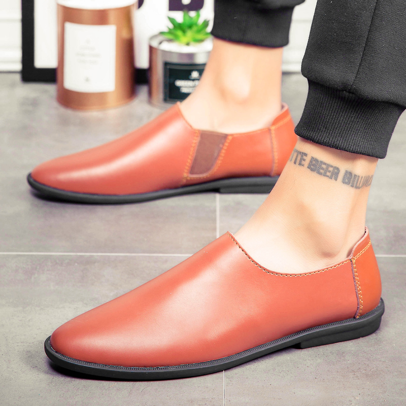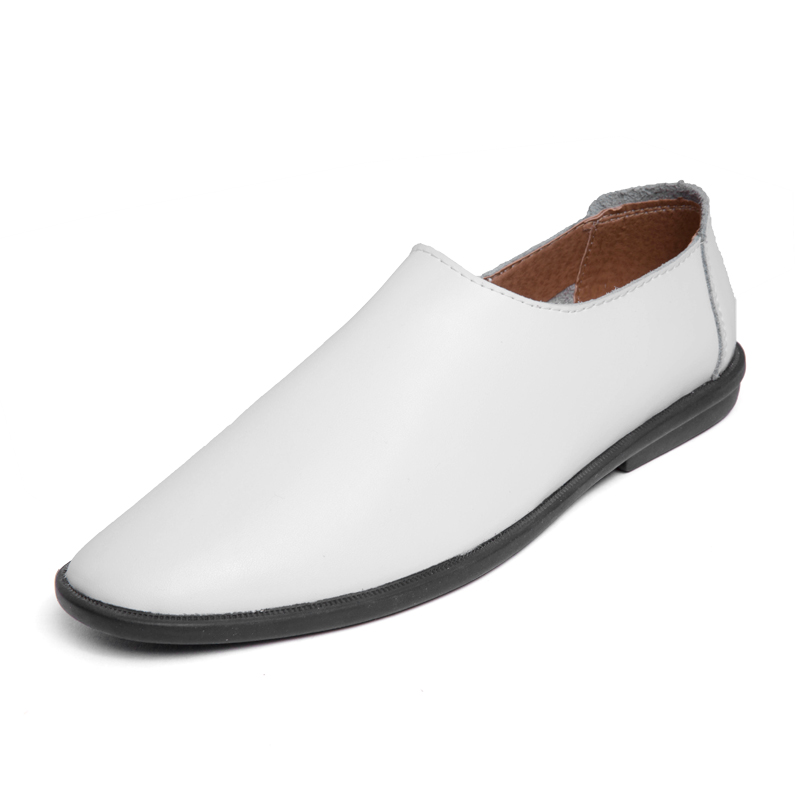 白色皮鞋男春季一脚蹬豆豆乐福鞋