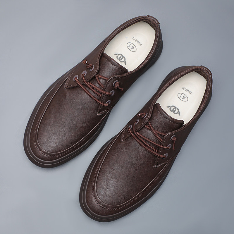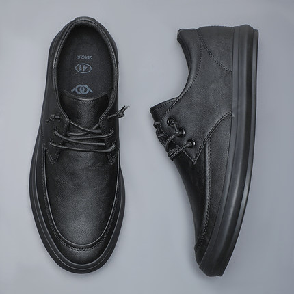 男鞋新款潮鞋子商务休闲鞋秋冬季防水系带英伦皮鞋软底软面工作鞋