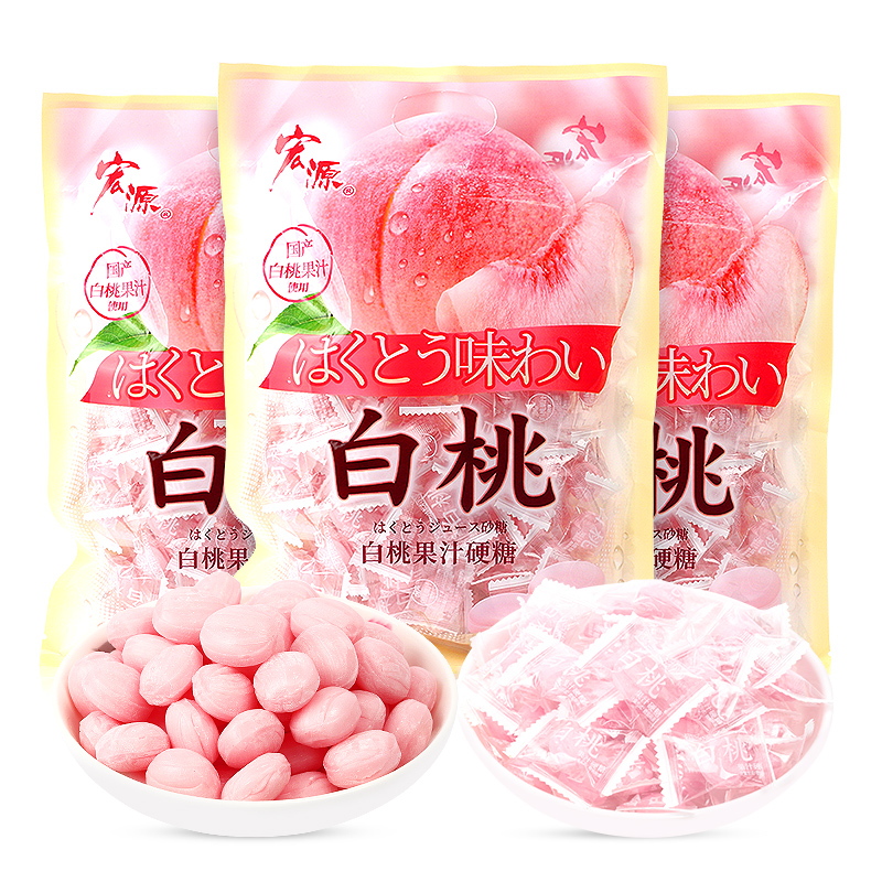 宏源白桃果汁硬糖500g创意结婚喜糖批发散装商用招待糖果小零食