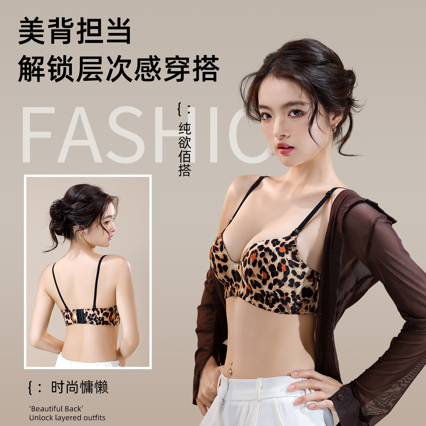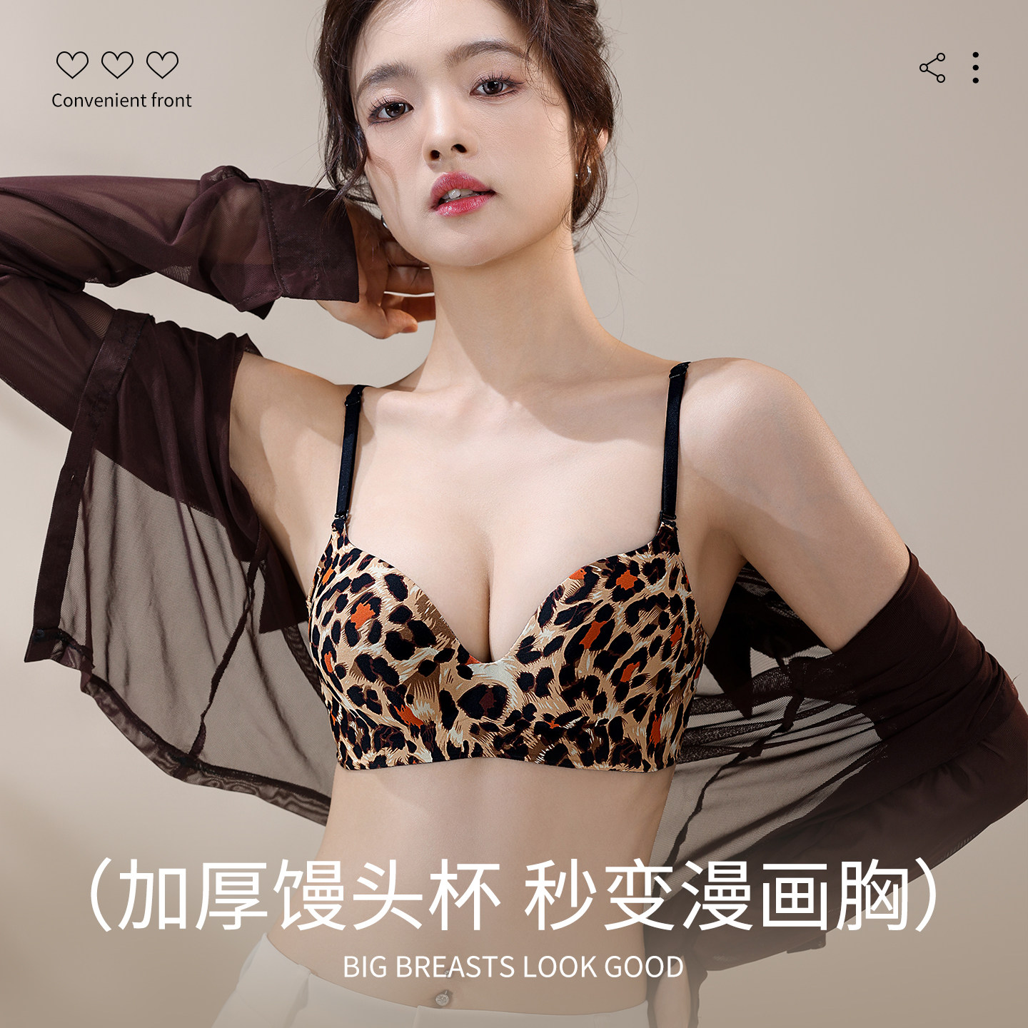 美背交叉粉底液超厚6cm内衣女小胸聚拢显大加厚平胸专用豹纹文胸