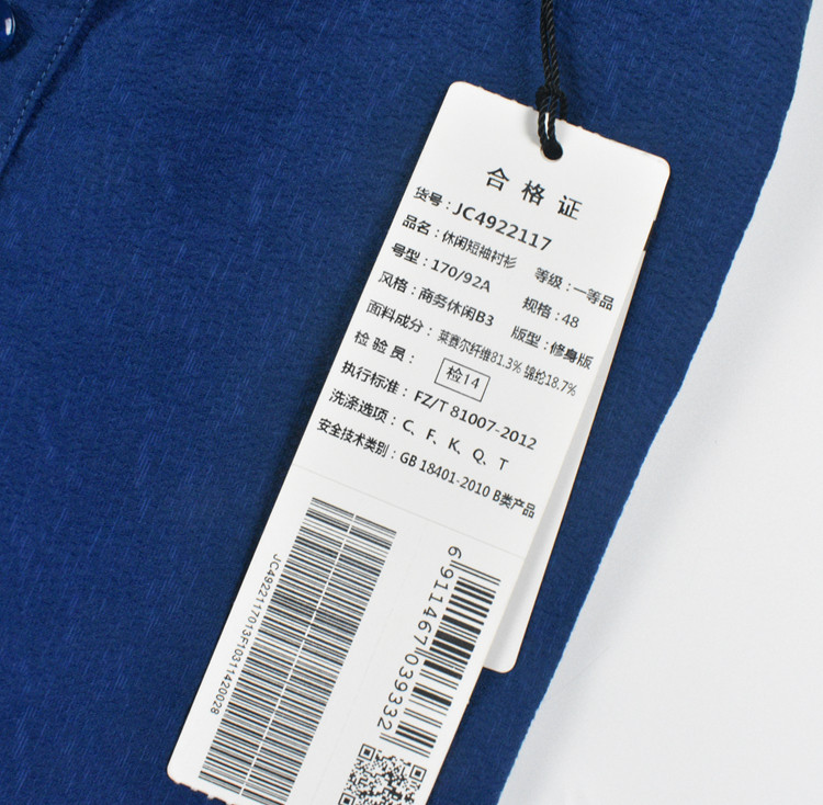 【天丝】正品九牧王夏季薄款商务男士短袖衬衫JC4922117