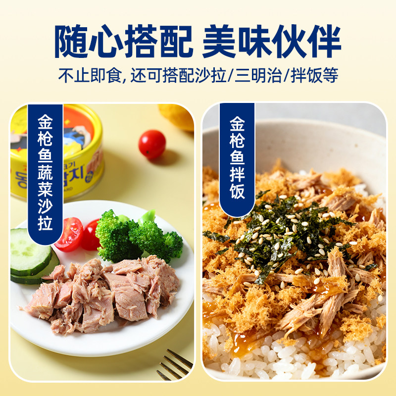 【金硕珍代言】韩国进口东远金枪鱼罐头食品水浸油浸吞拿鱼肉海鲜