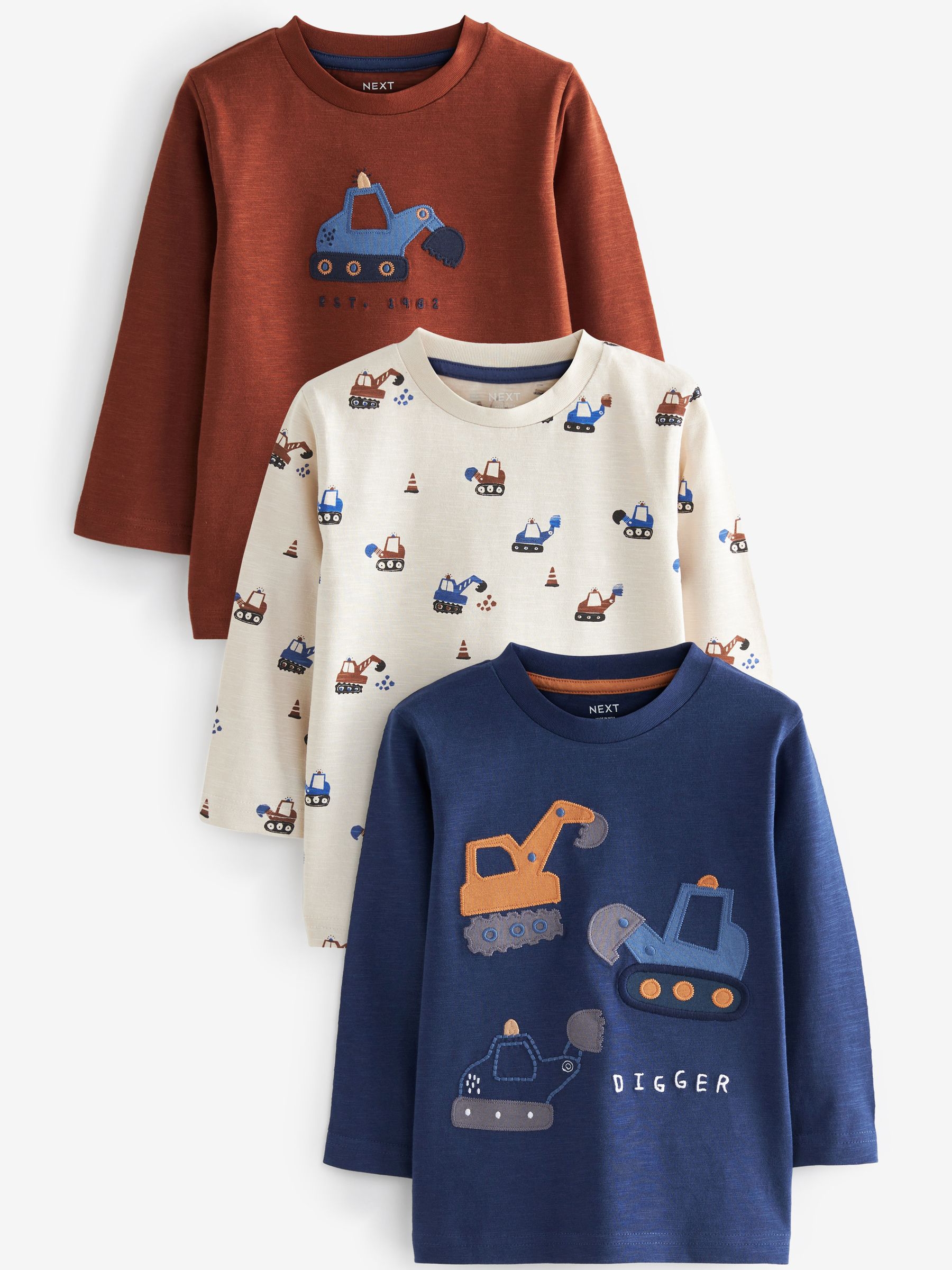 折扣 现货Next官方正品童装25年春秋长袖上衣中小童纯棉恐龙T恤
