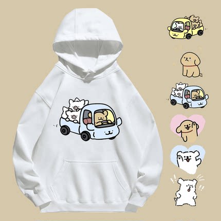 马尔济斯线条小狗卡通联名款男女情侣同款时尚定制外套带帽卫衣服