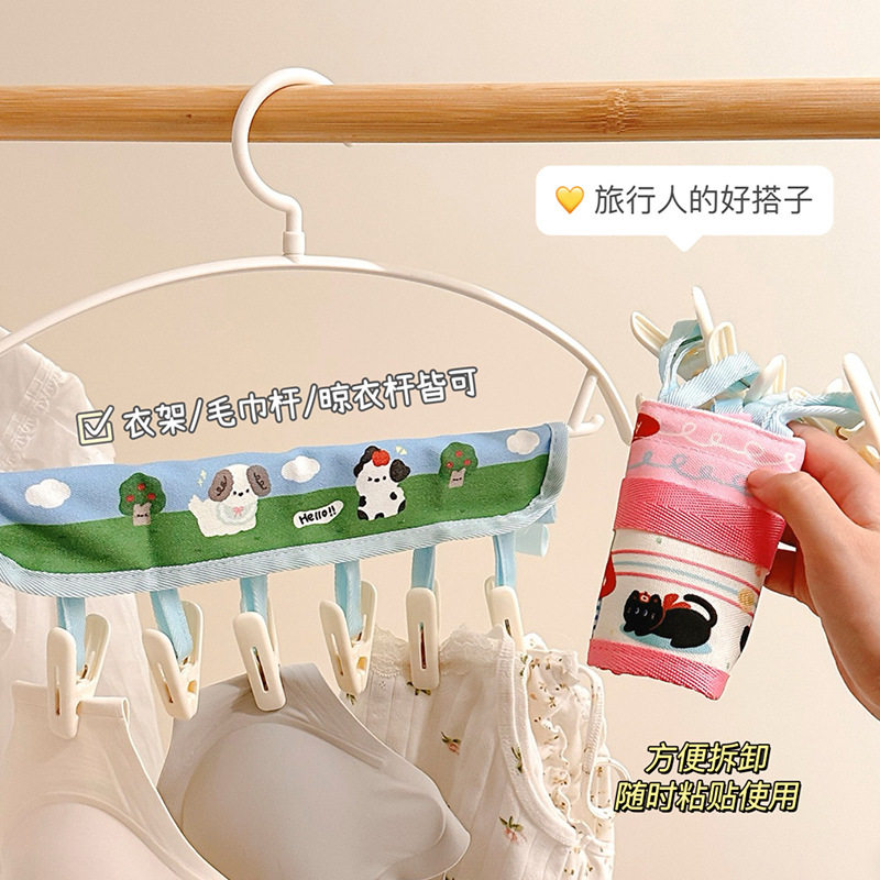 旅行便携折叠布艺衣架外出旅游晾衣服神器酒店内衣袜子夹子晾衣架