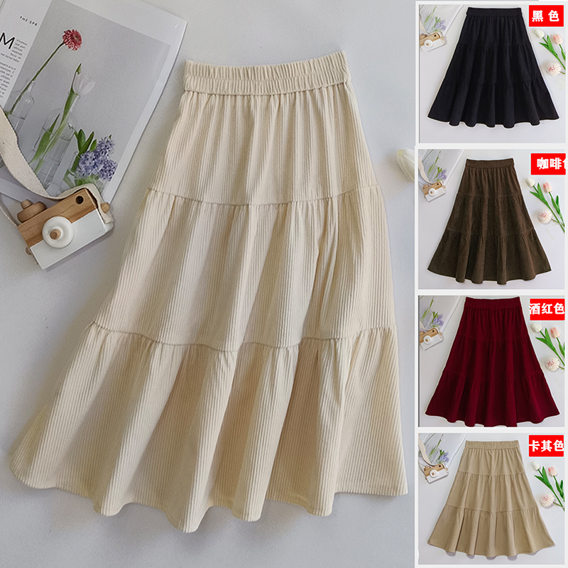 女童半身裙2023新款女孩灯芯绒半身裙秋冬中长版女大童百褶裙裙子