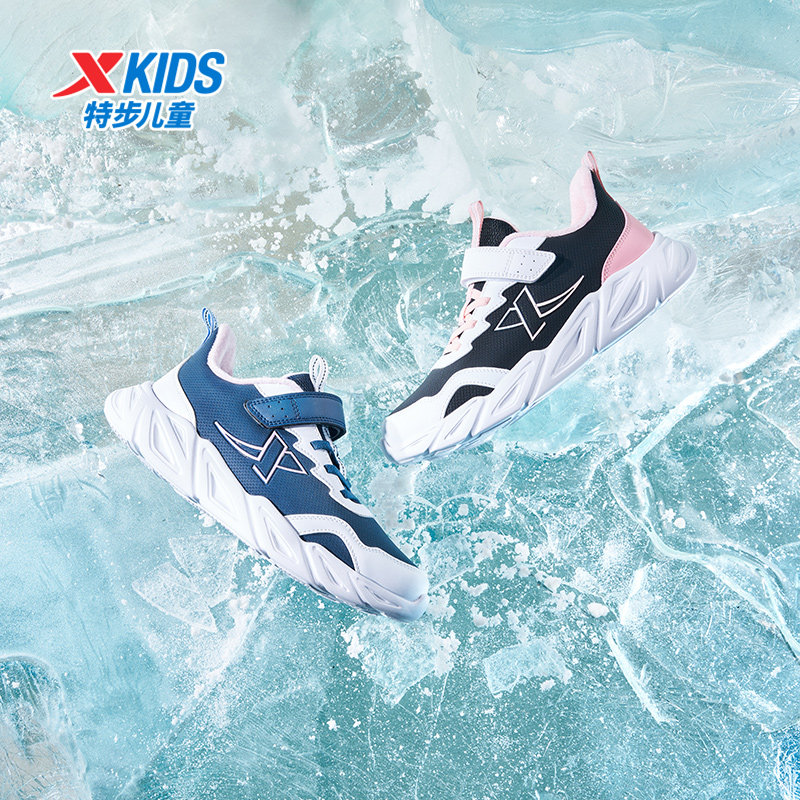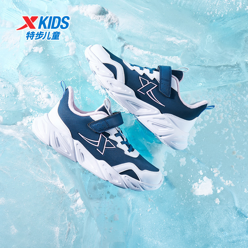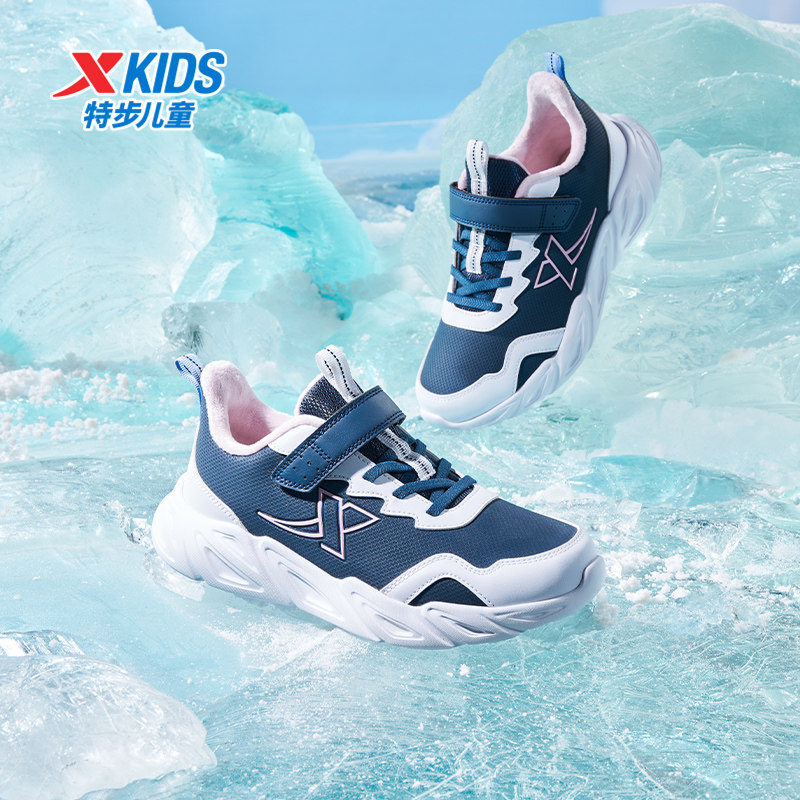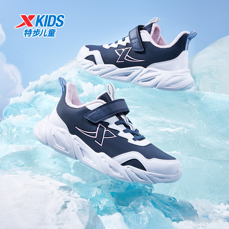 特步童鞋冬季新款儿童运动跑鞋女童中大童魔术贴户外加绒保暖棉鞋
