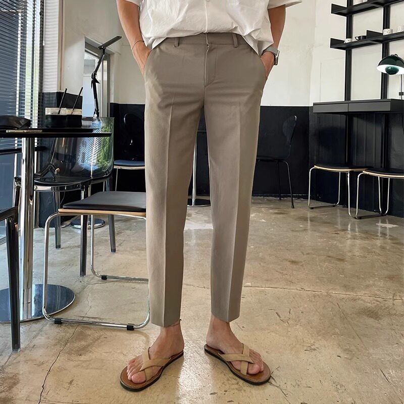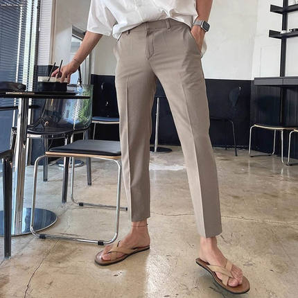 韩系工装西裤男高级感修身九分裤免烫休闲西服裤子9分小脚西装裤