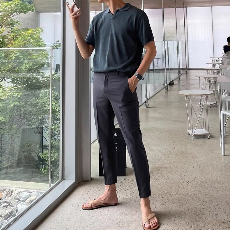 韩系工装西裤高级感修身九分裤