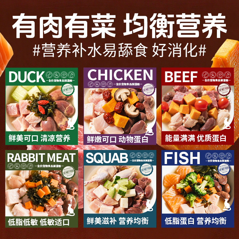 猫教授猫咪全价主食湿粮包乳鸽鸡鸭鱼兔牛肉猫饭营养罐头猫粮猫条