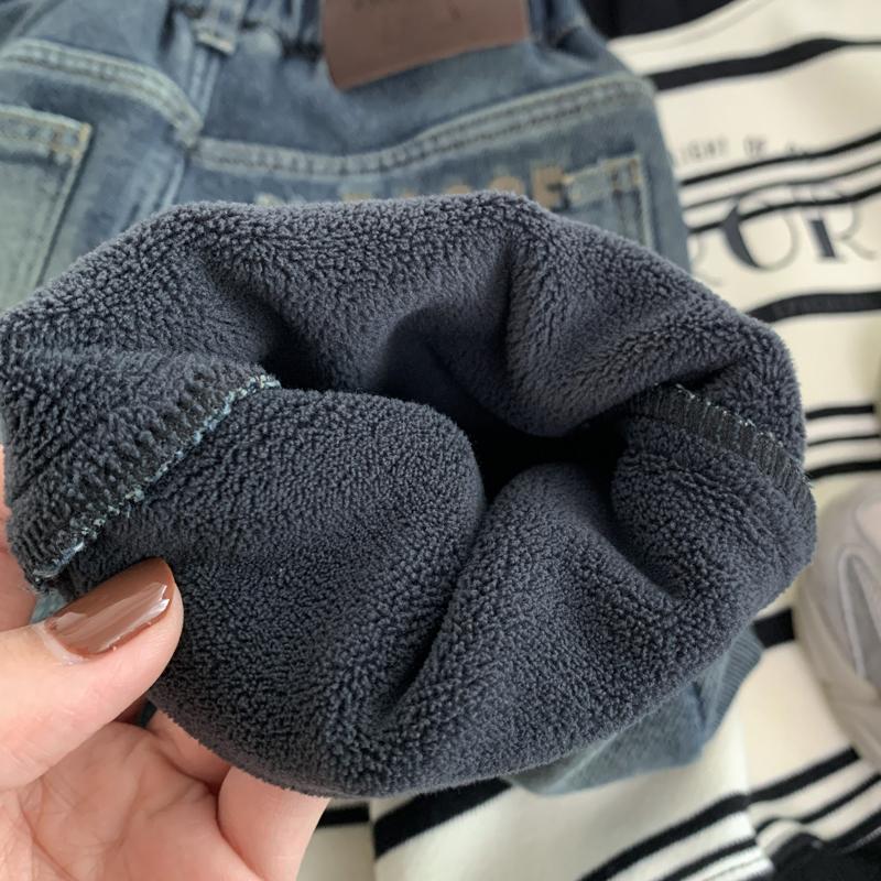 男孩时髦字母柔软加绒牛仔裤帅气