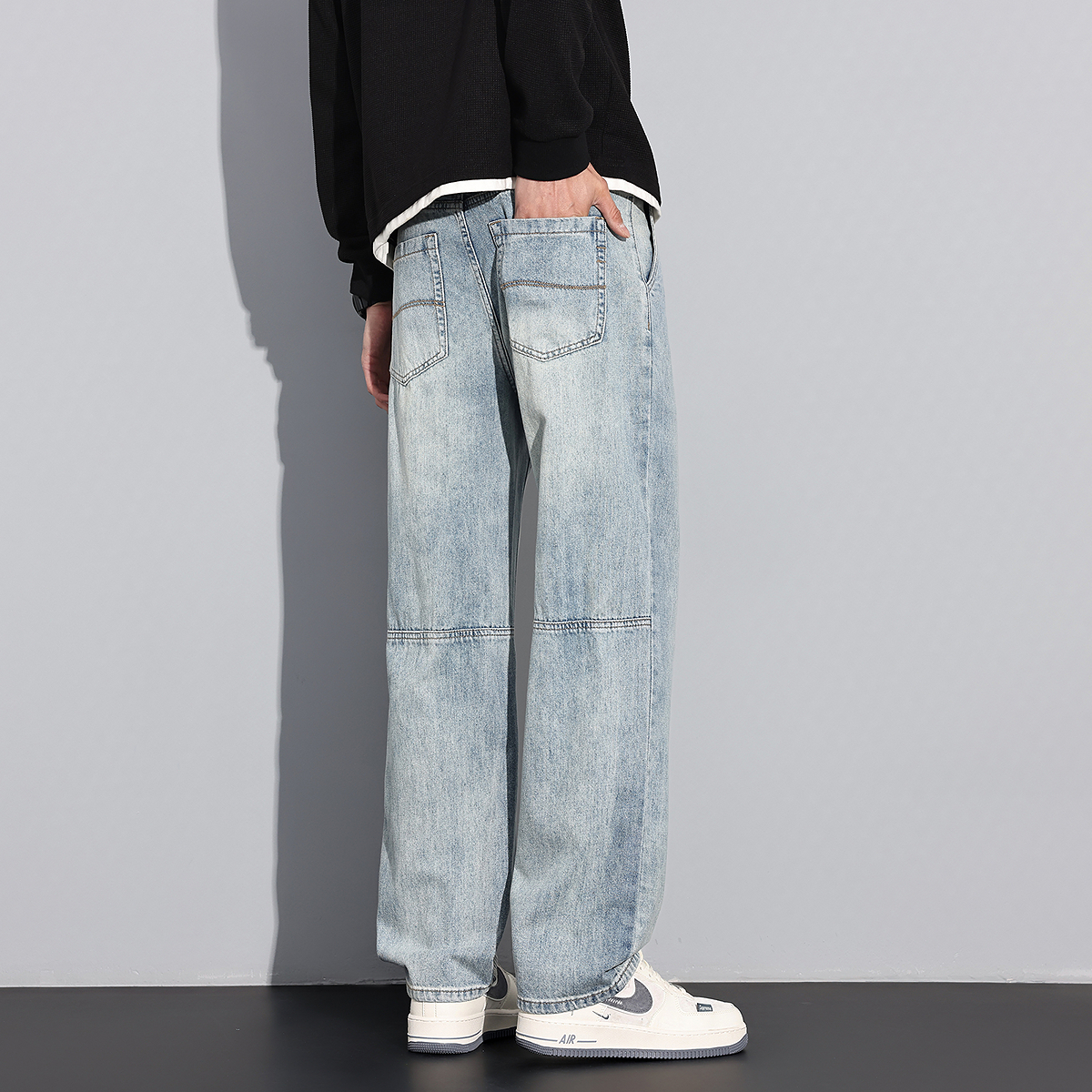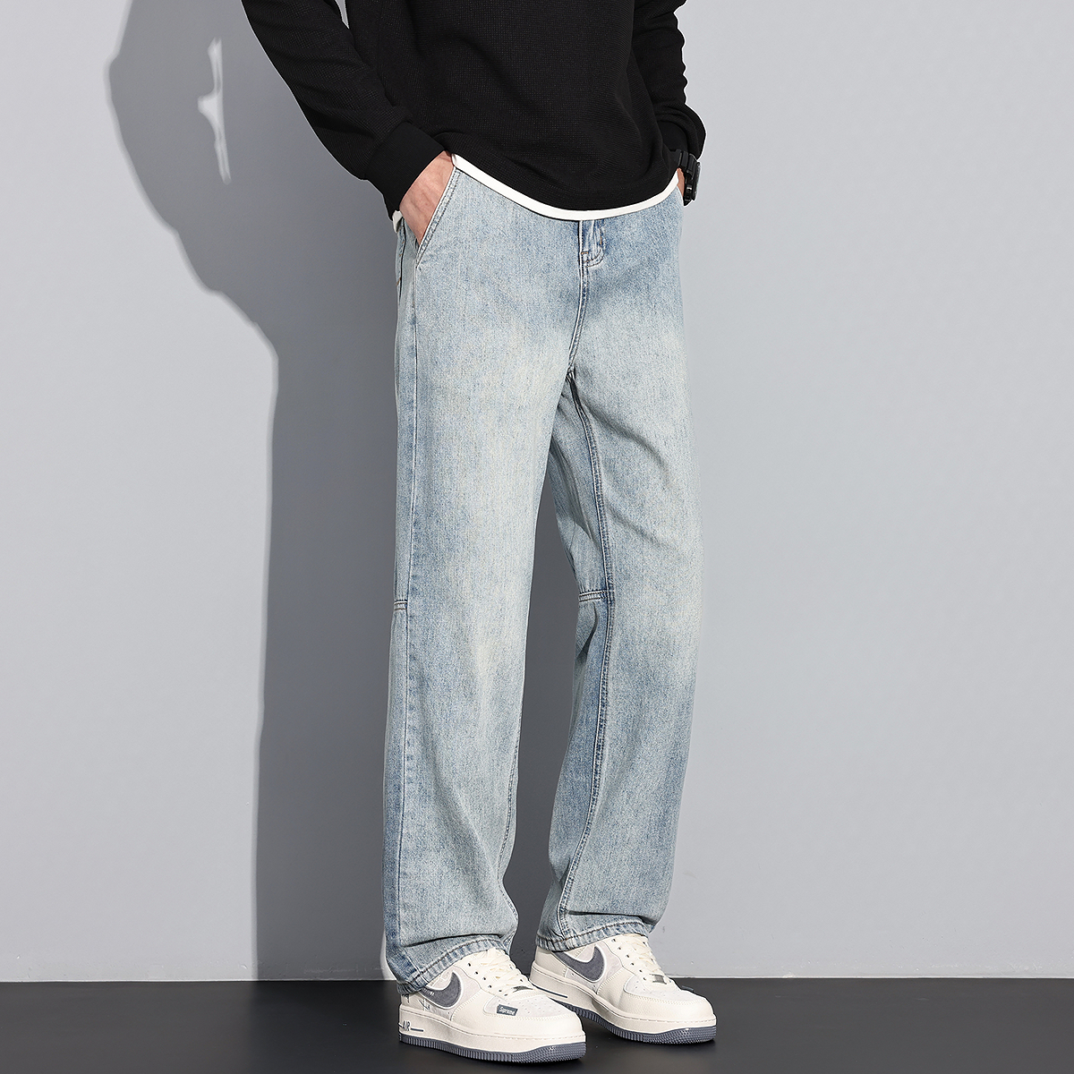 唐狮2025春夏新款男牛仔裤美式复古直筒裤潮流帅气切割线宽松裤子