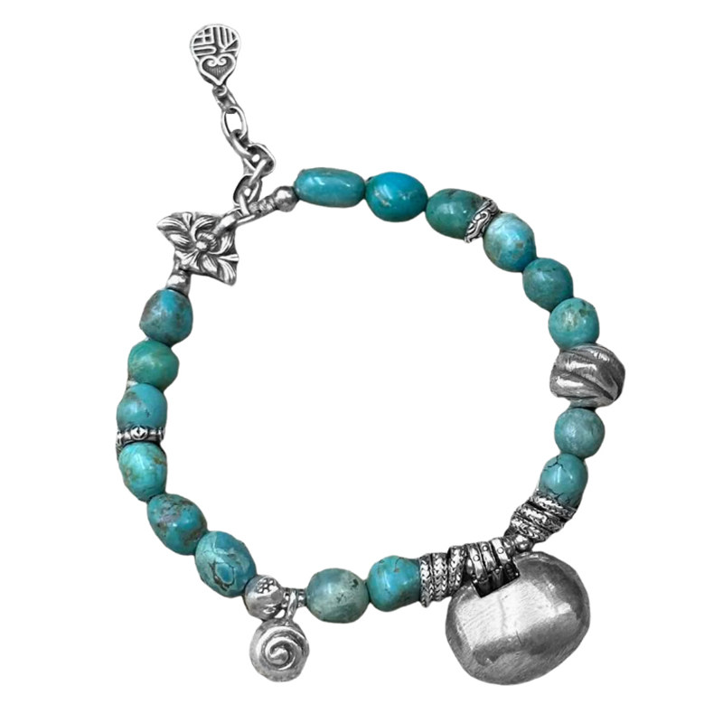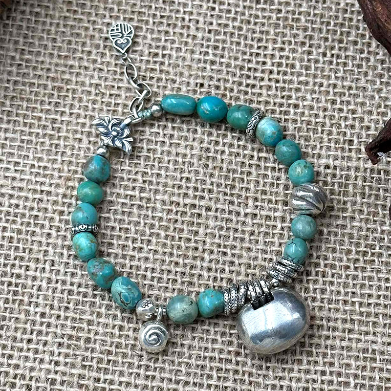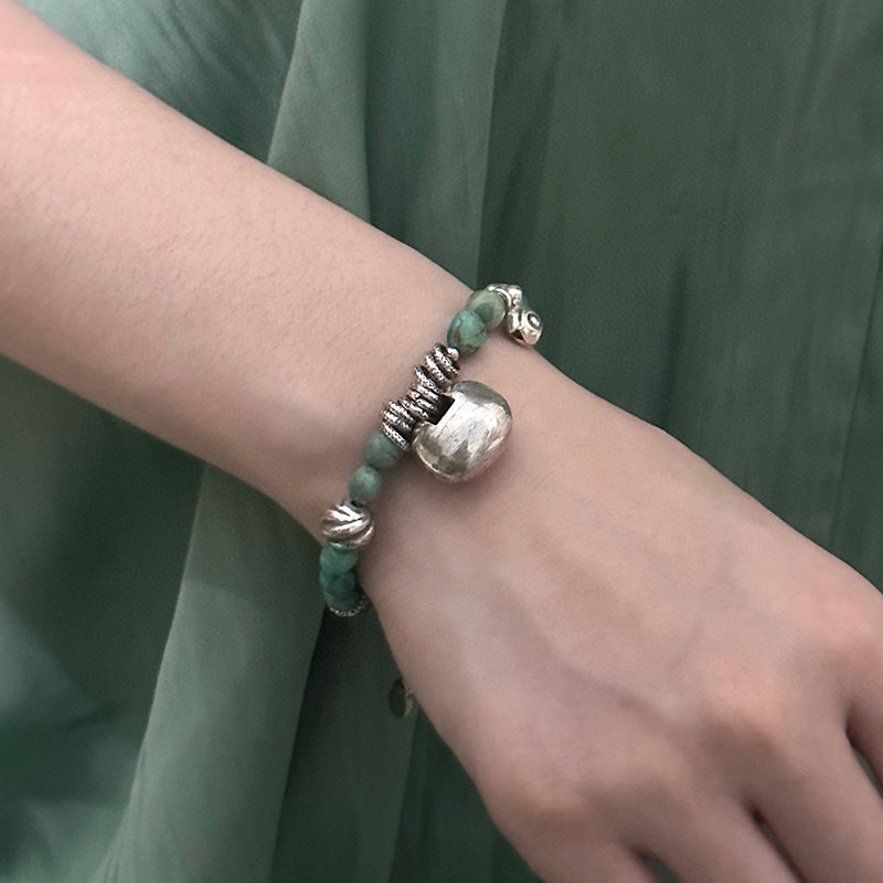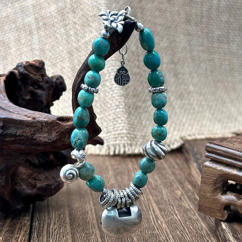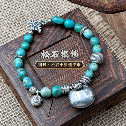 国风如意锁纯银手链女2024年新款绿松石手串男复古长命锁生日礼物