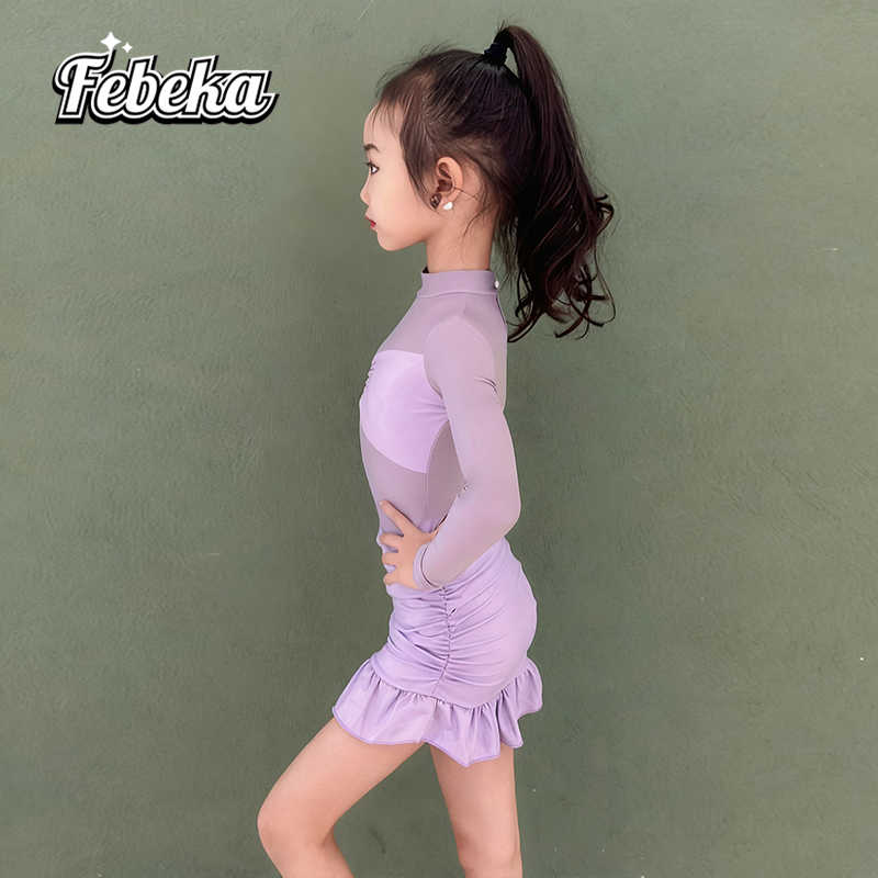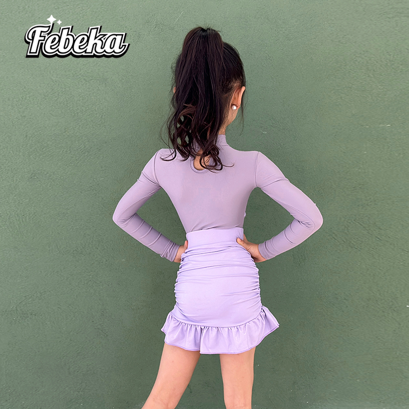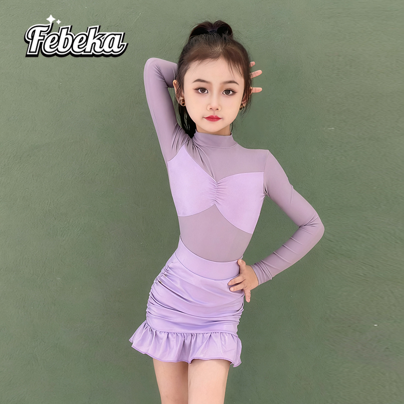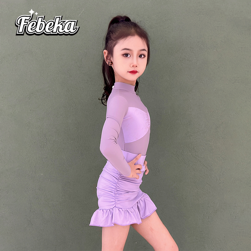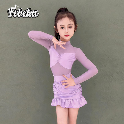 菲贝咔拉丁舞服女童秋冬2025新款高级紫色拉丁练功舞蹈演出服套装