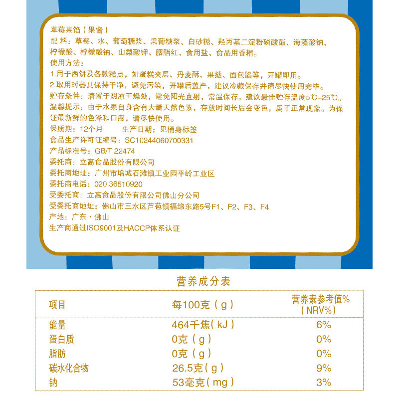 新仙尼旗舰店草莓菠萝果馅3kg蛋糕面包夹心果酱烘焙商用原料立高