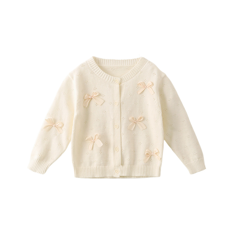 Amila童装女童蝴蝶结针织开衫2025春秋装新款女宝宝甜美毛衣外套