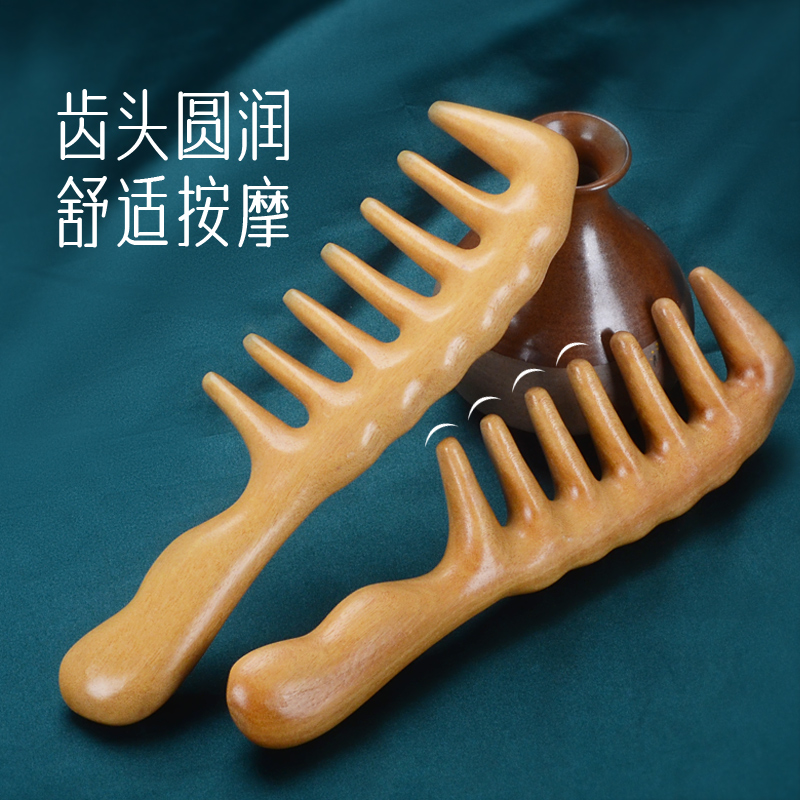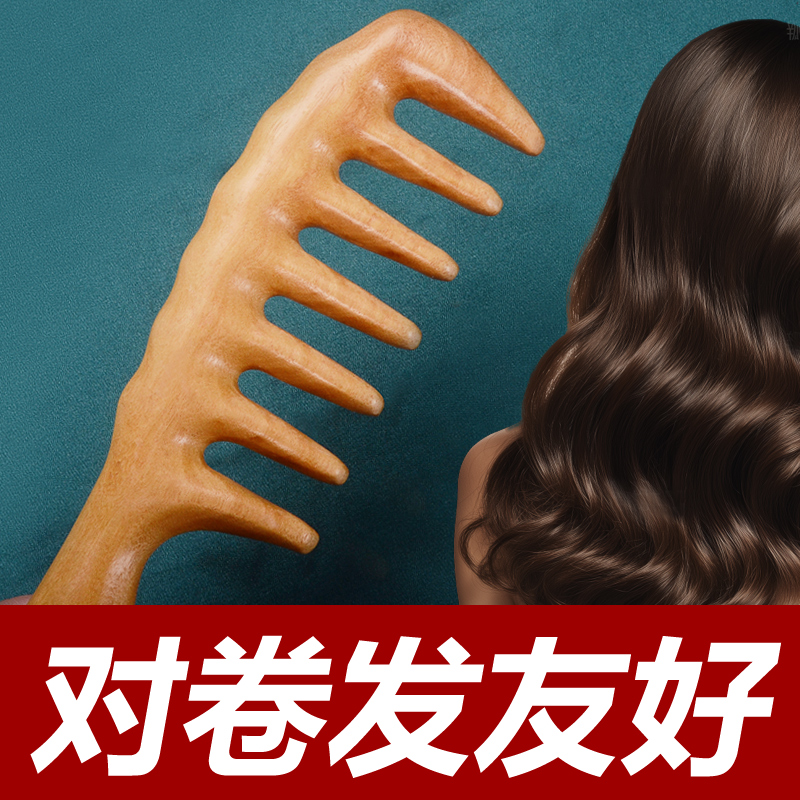 大齿梳子宽粗加厚经络按摩梳卷发烫发天然檀木梳女士专用长发巨齿