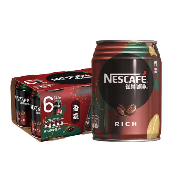 香港进口雀巢香滑香浓焙煎奶滑黑咖啡饮料250ml罐装即饮即食港版