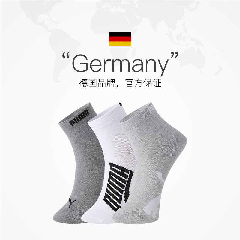 【自营】PUMA彪马袜子男士纯色简约百搭运动休闲透气中筒袜3双装