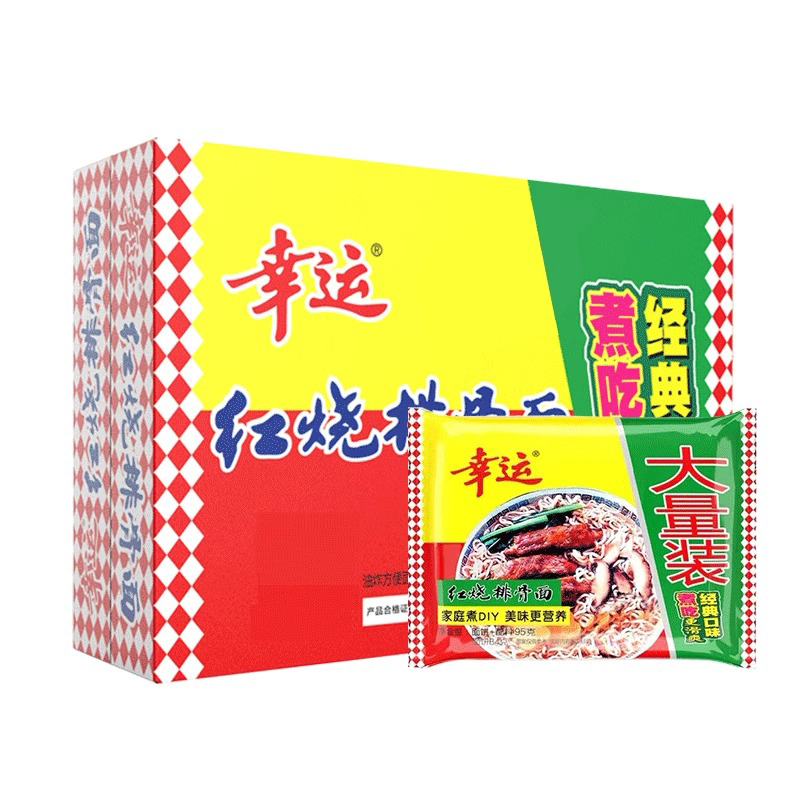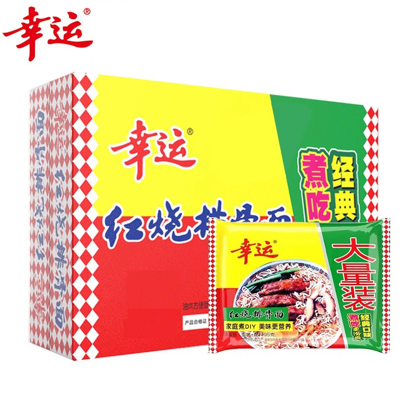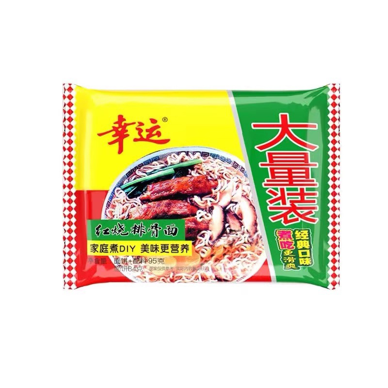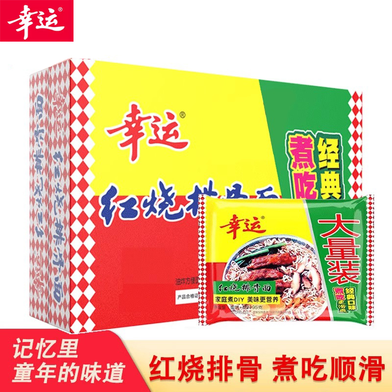 幸运方便面红烧排骨面整箱100g*24袋装零食泡面干脆面单包料泡面