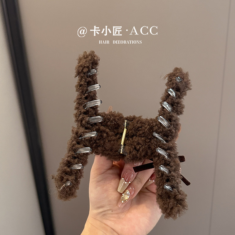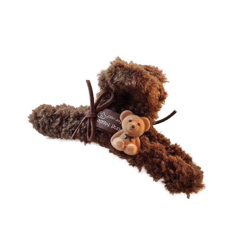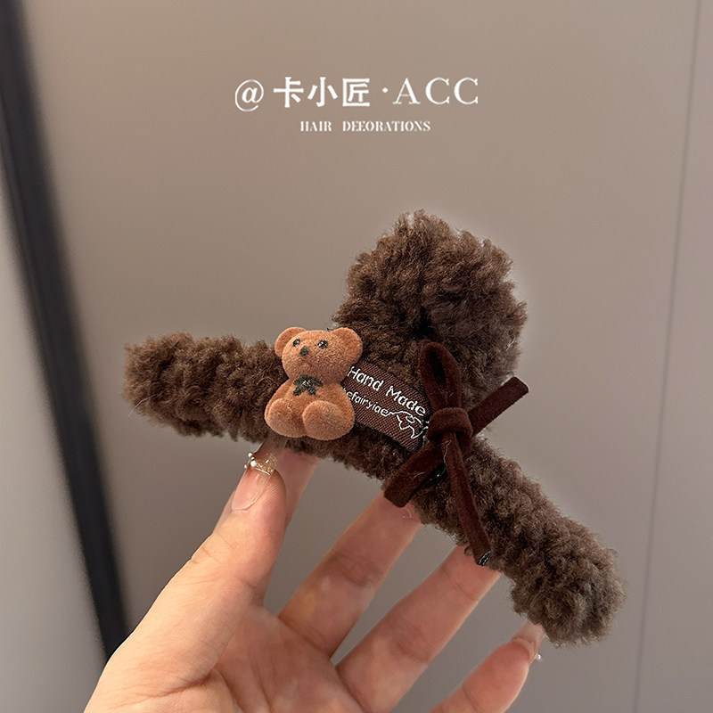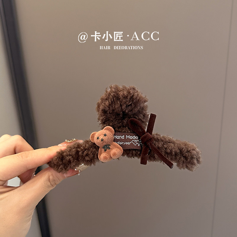 明星同款小熊头发抓夹女高级感2025新款秋冬毛绒发夹发量大鲨鱼夹