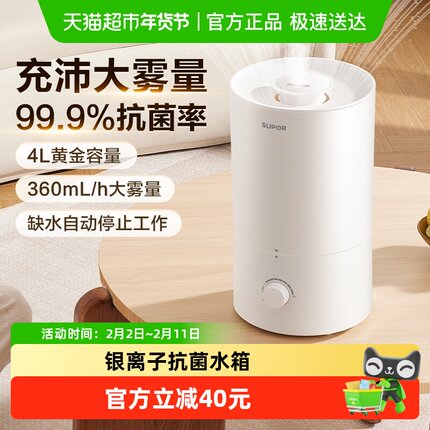 苏泊尔加湿器家用轻音卧室孕妇婴儿办公室大雾量抗菌空气喷雾机