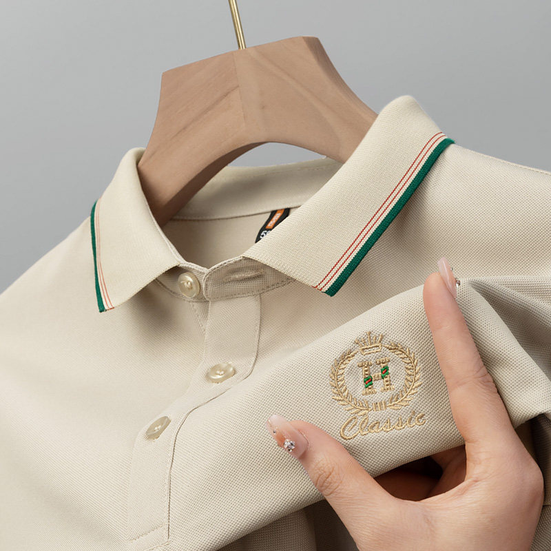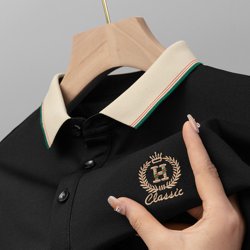 夏季新款男士短袖t恤精致刺绣商务纯色翻领百搭polo衫男吸汗透气