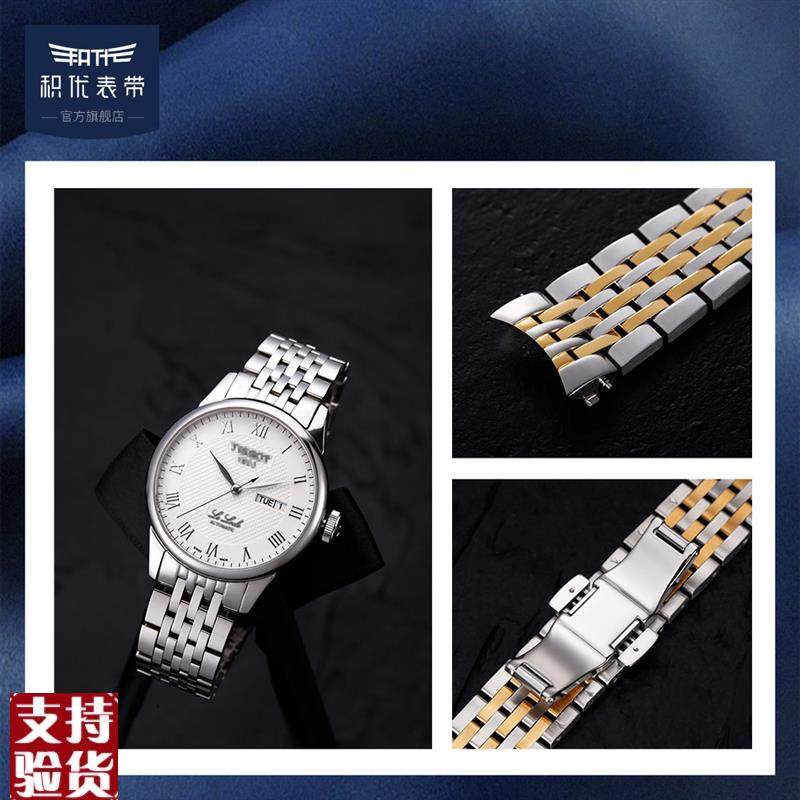 原装适配天梭1853男士钢带适用库图力洛克豪致宝环速驰弧形22mm表
