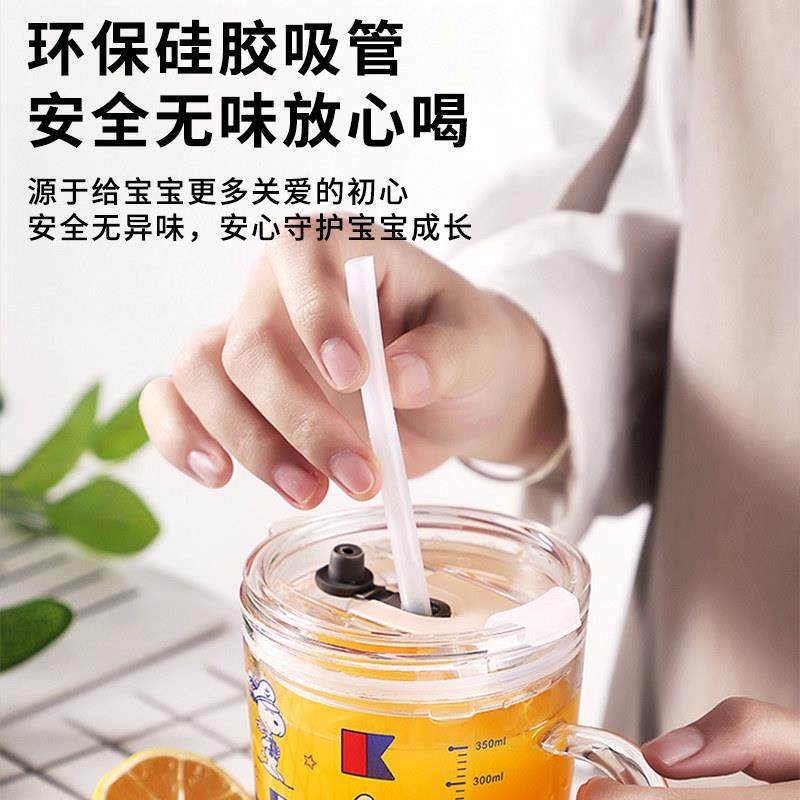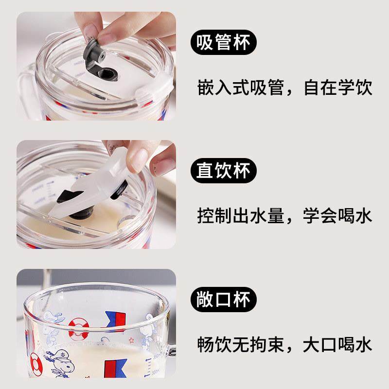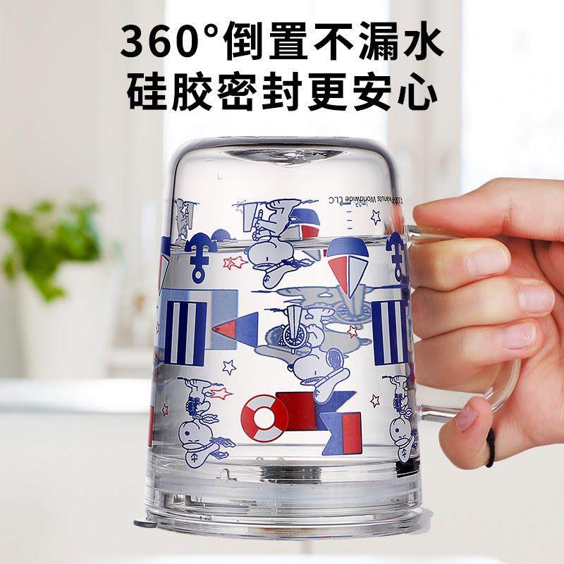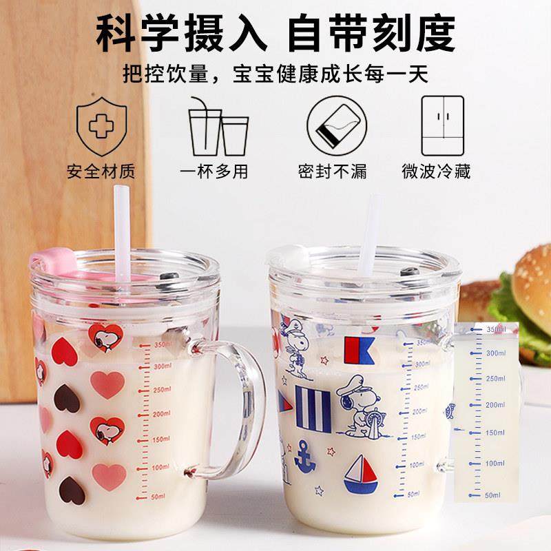 史努比马克杯玻璃牛奶杯带刻度办公杯子微波炉加热儿童带吸管水杯