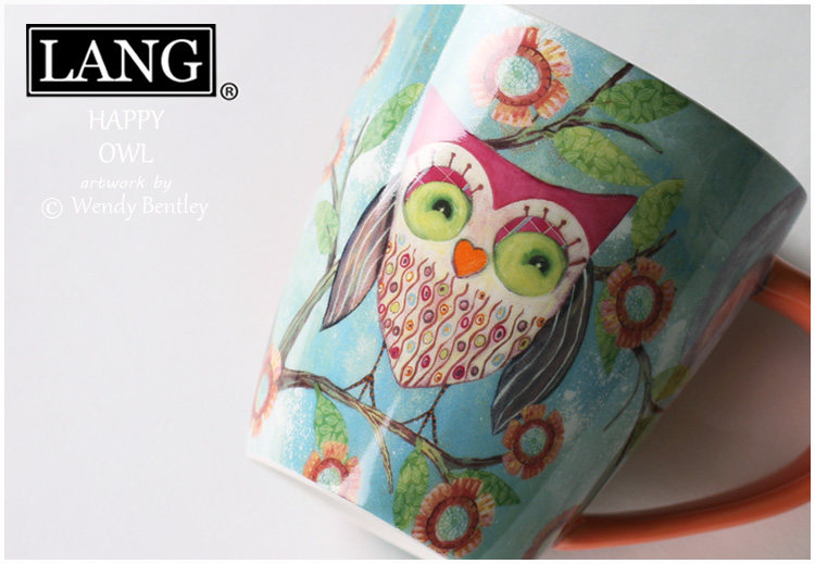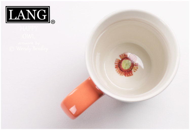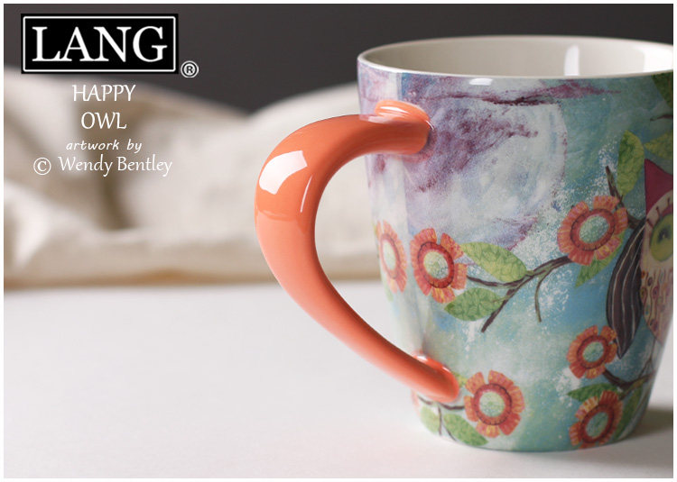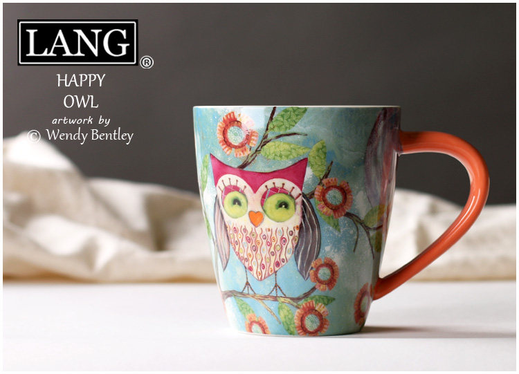 美国LANG 开心猫头鹰 插画风格创意陶瓷大容量马克水杯杯子 橘色