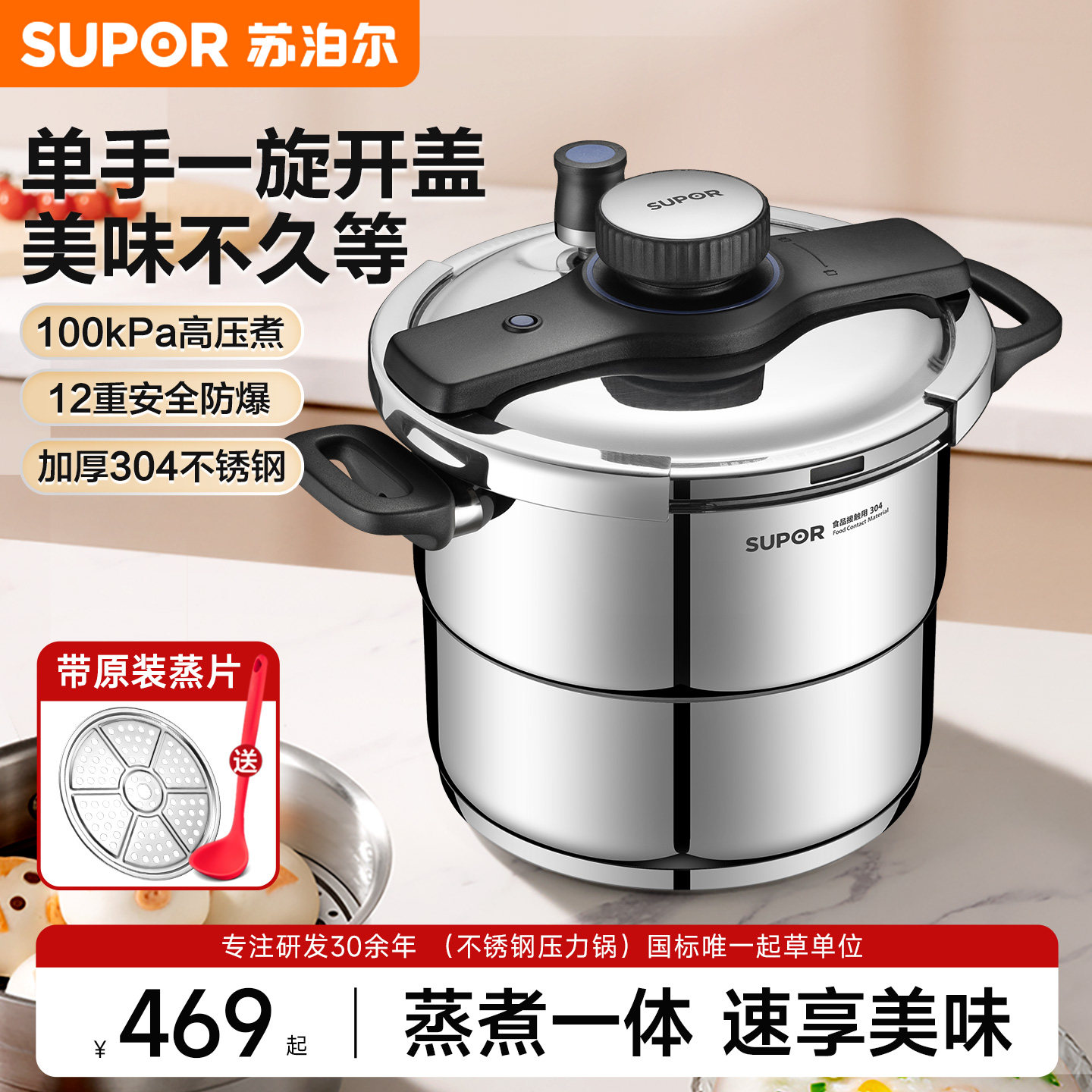 苏泊尔高压锅304不锈钢压力锅家用加厚防爆燃气电磁炉正品易开合