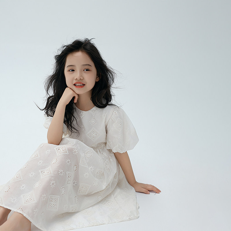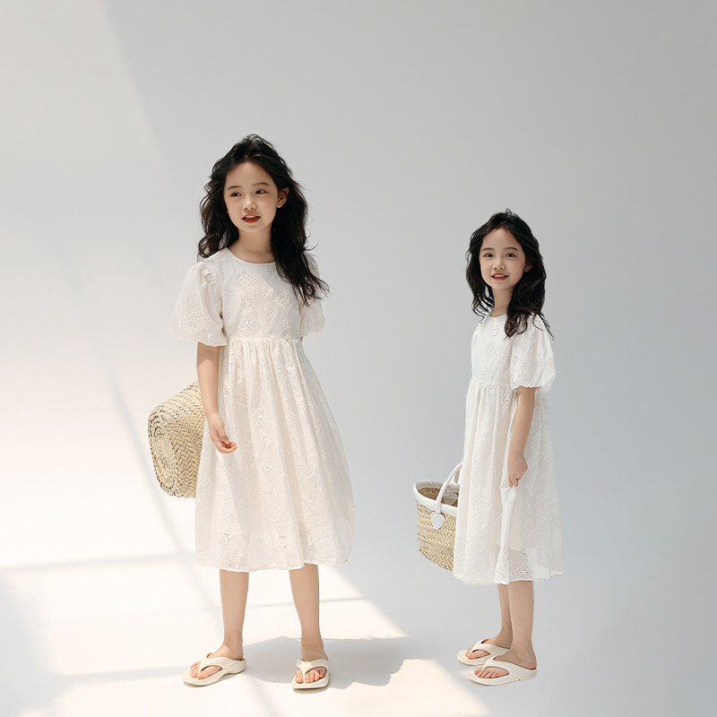 艾上朵女童连衣裙2025夏装新款女中童刺绣公主裙儿童洋气短袖裙子