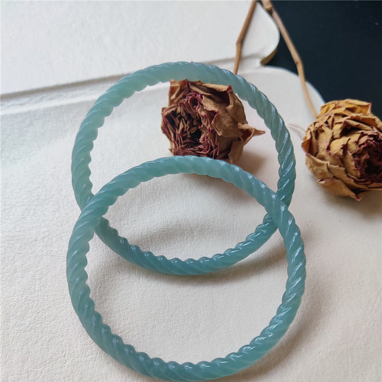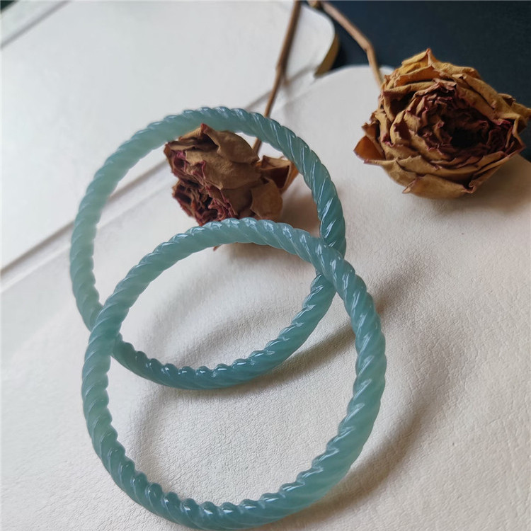 天然A货翡翠危料蓝水雕刻麻花款叮当手镯 女款翡翠镯子饰品礼物