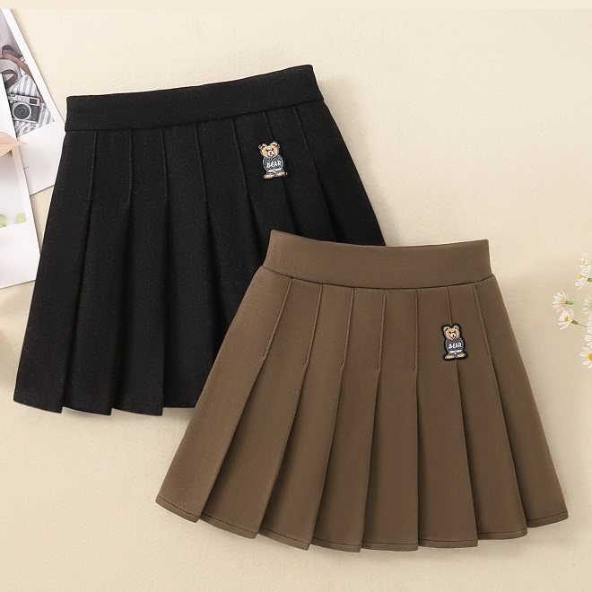 女童半身裙西装百褶裙2025春秋冬款女孩毛呢短裙儿童学院风JK裙子