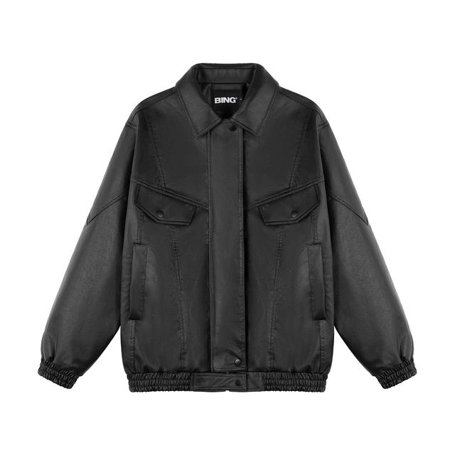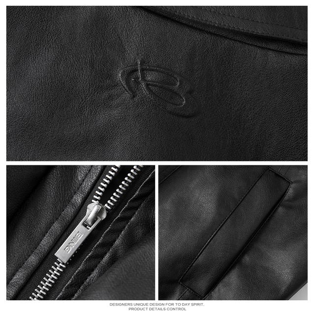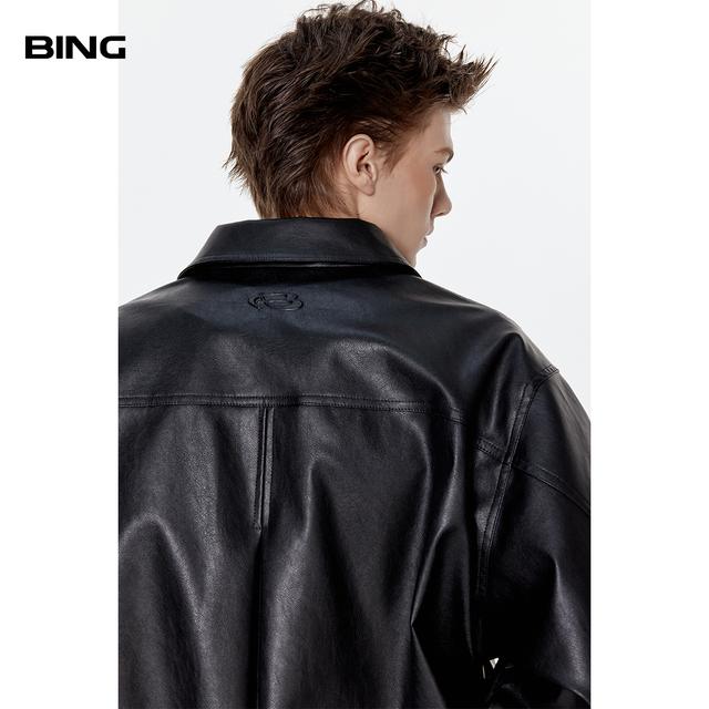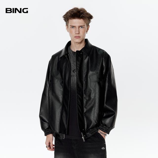 BING潮牌美式机车皮衣外套男春秋复古宽松休闲潮流帅气PU皮夹克