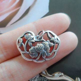 曼谷银 纯银 泰银 925手工银 ph7复古镂空牡丹锁好运吊坠1.9cm