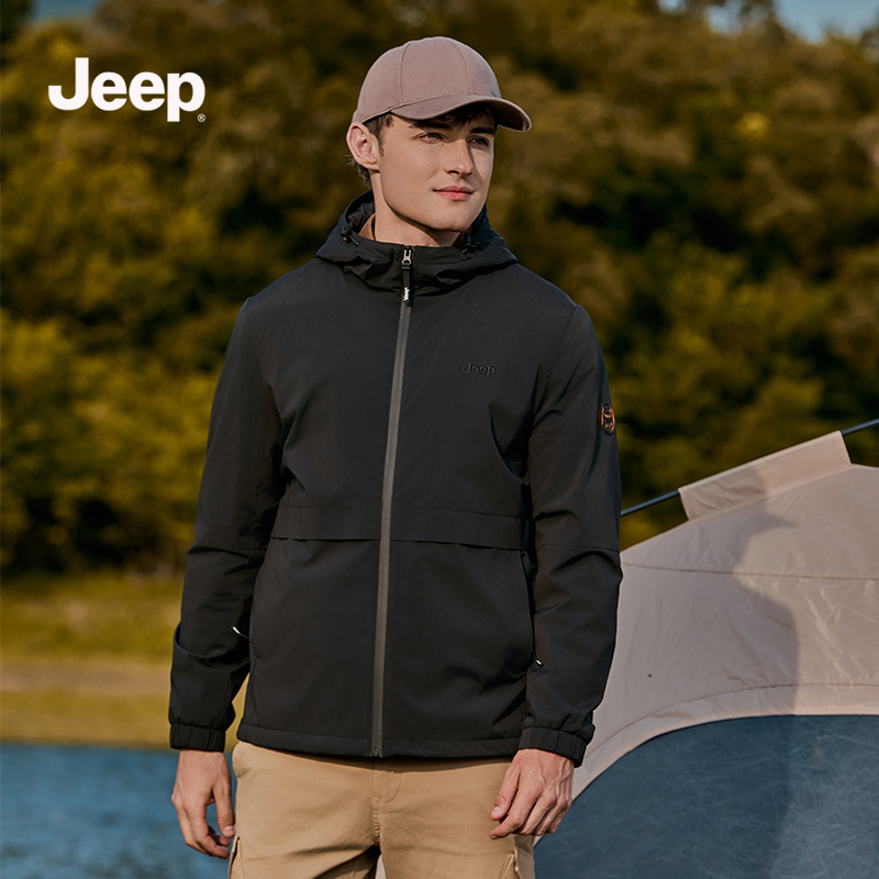 Jeep吉普官方旗舰店连帽夹克男2025新款秋季加绒保暖休闲宽松外套