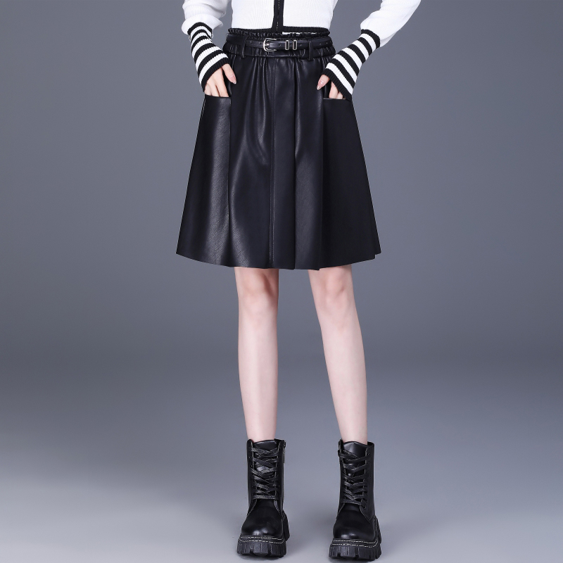 2025秋冬新款真皮皮裙小个子中年女高腰显瘦绵羊皮a字短裙半身裙