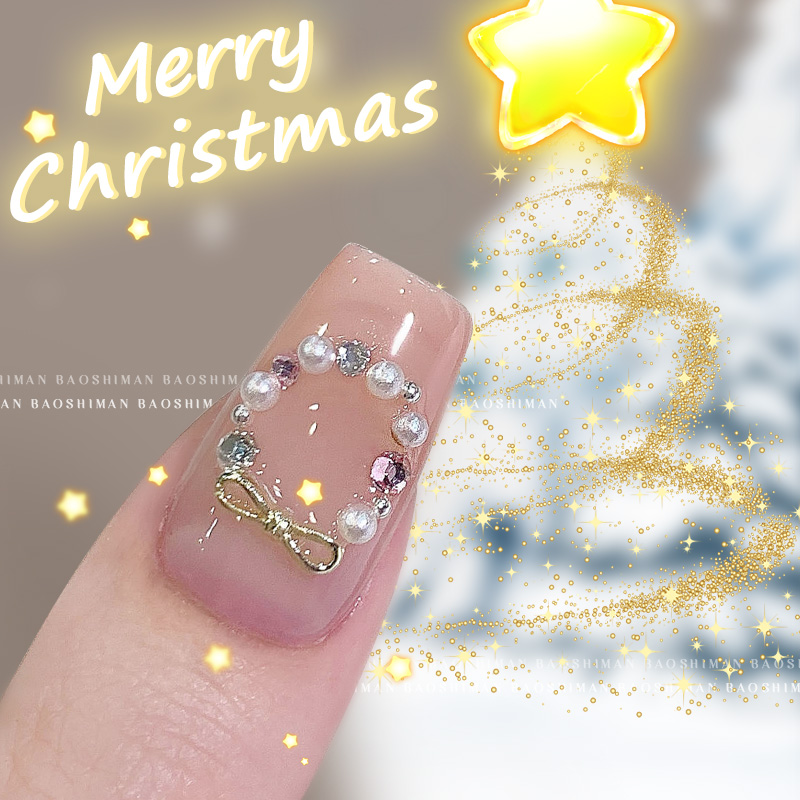 美甲装饰品圣诞花环蝴蝶结小领结饰品麻花绳结指甲配饰珍珠钻饰品