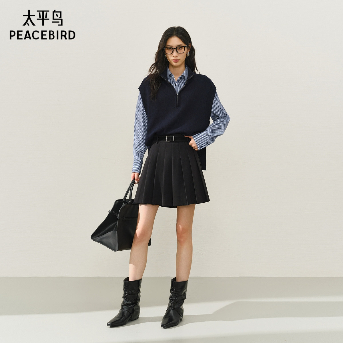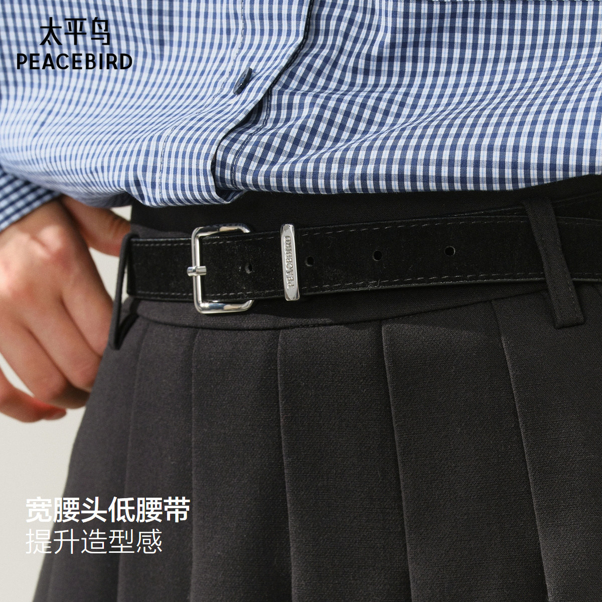 【商场同款】太平鸟百褶A字半身裙女25新款品质黑色短裙A1GEF4164