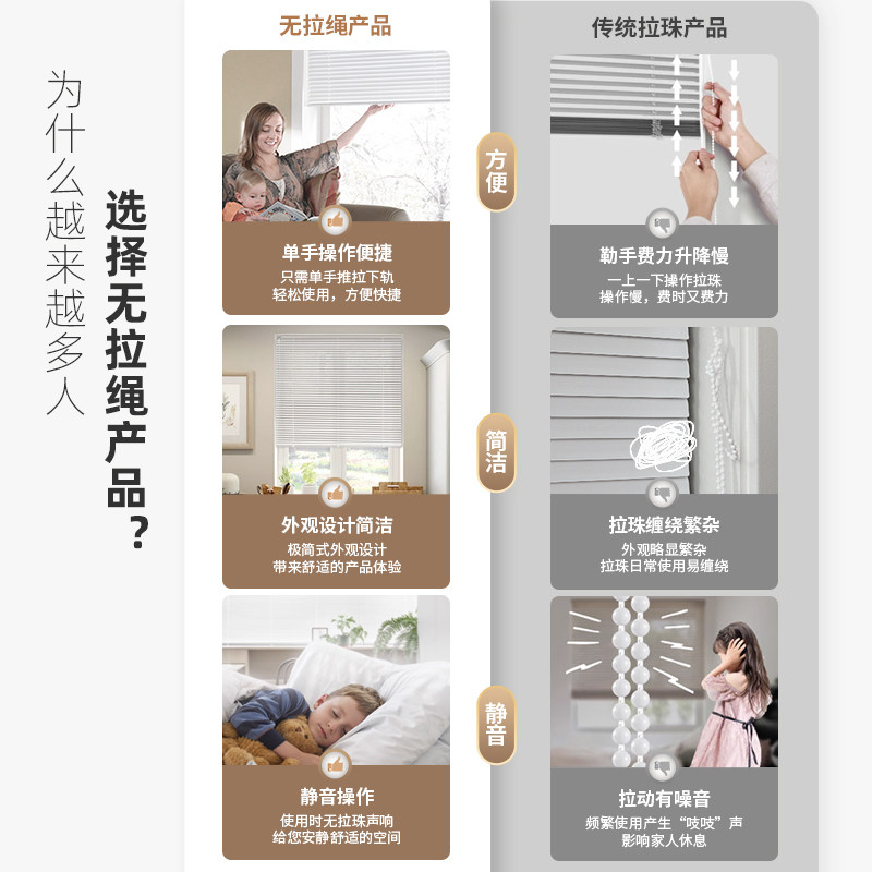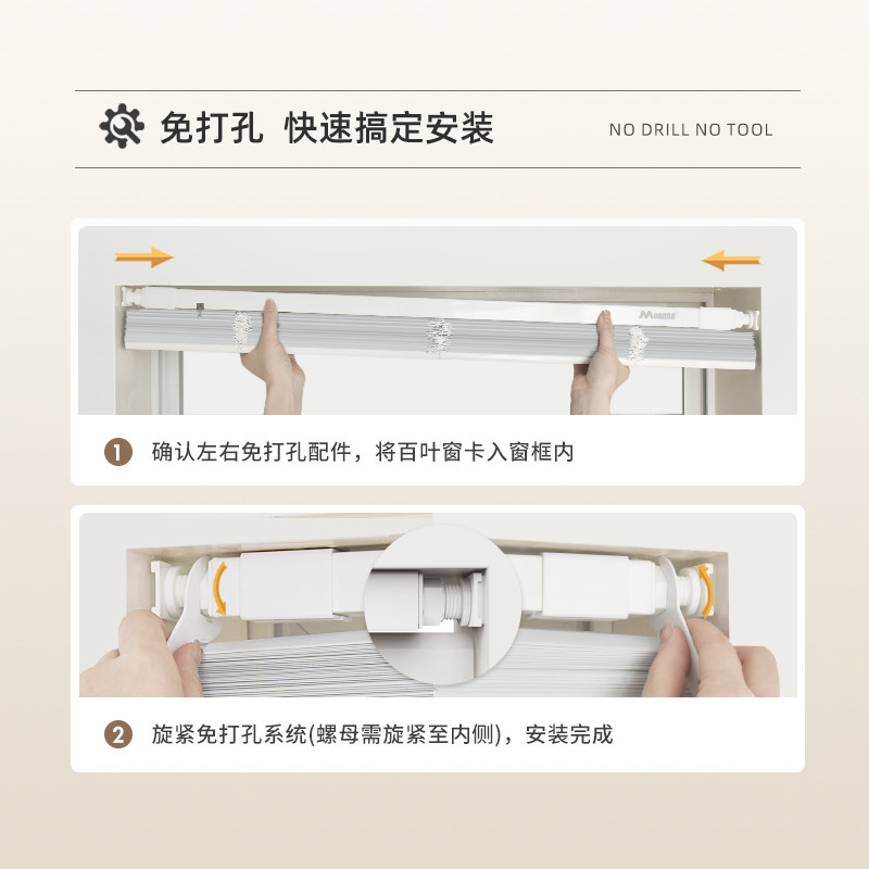 慕安娜无绳推拉pvc防窥百叶窗帘免打孔卫生间卧室厨房遮光帘升降