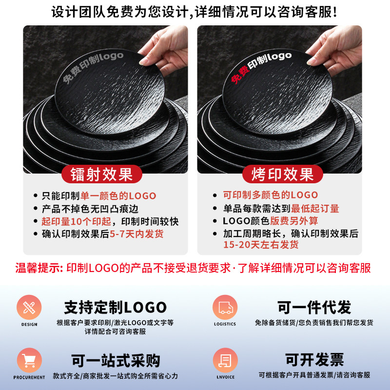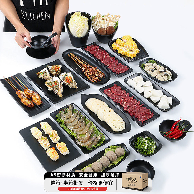 密胺餐具盘子商用餐饮黑色烤肉烧烤专用餐盘骨碟火锅酒吧小吃碟子