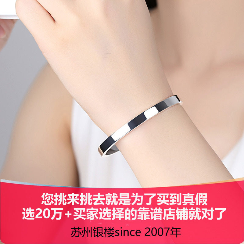 苏州银楼 足银999银镯子纯银生日送女友光面银手镯 四方简约手镯