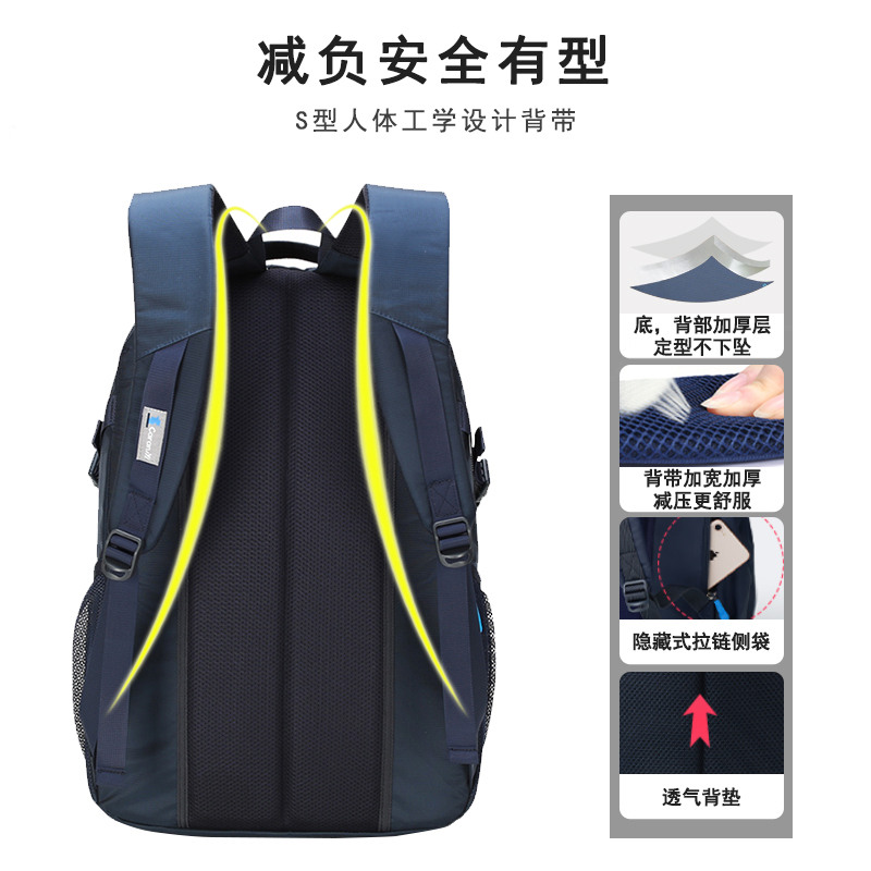 卡拉羊男中学生书包初中生高中生大容量旅行双肩包减负减压后背包