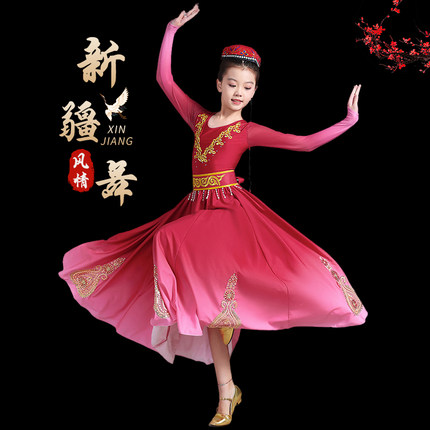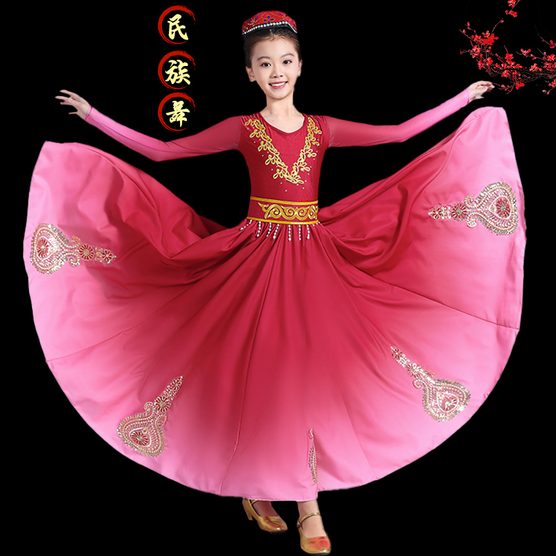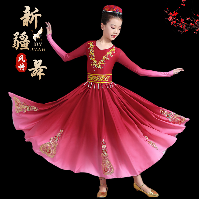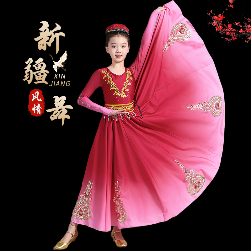 新疆舞蹈演出服儿童新款维吾尔族民族服装艺考练习群半身裙大摆裙
